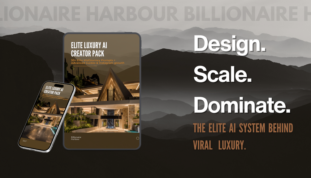 ⚡ A premium collection of 30+ curated prompts for Mansions, Interiors, Supercars, Yachts, and Lifestyle visuals. 💡 Includes a mini-guide on angles, lighting & environments to make your outputs more unique. 🚀 Perfect for creators who want scroll-stopping content and a taste of luxury AI design — before stepping into the Ultimate Pack with 60+ prompts and full growth system.
